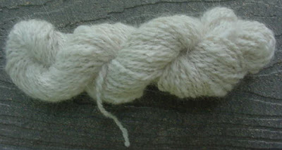 I have an upcoming guild project, we will be making a Christmas Angel ornament. It calls for angora yarn and I decided to spin my own. Actually a blend of bunny and alpaca as I didn't quite have enough bunny. I ended up with 40 yards (14 grams). Anyway, I also purchased some kidsilk haze and I am planning to include the extra fine strand to the wings. It's white with a slight sparkle to it. I think it will add that extra special touch that will make it different from all the others ; )
